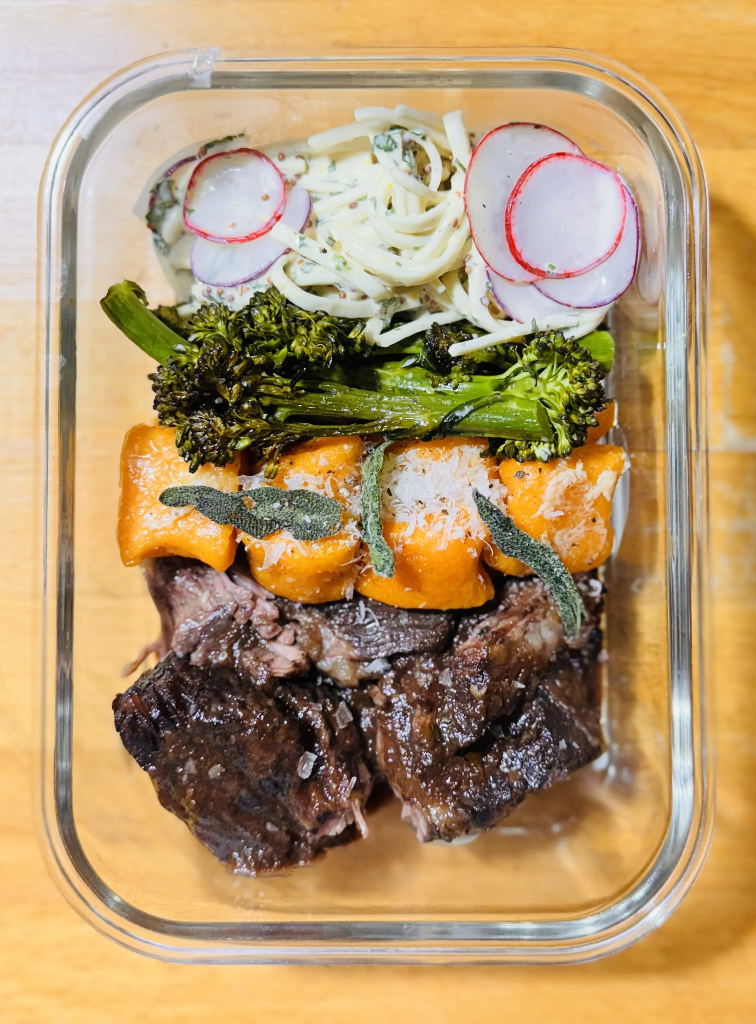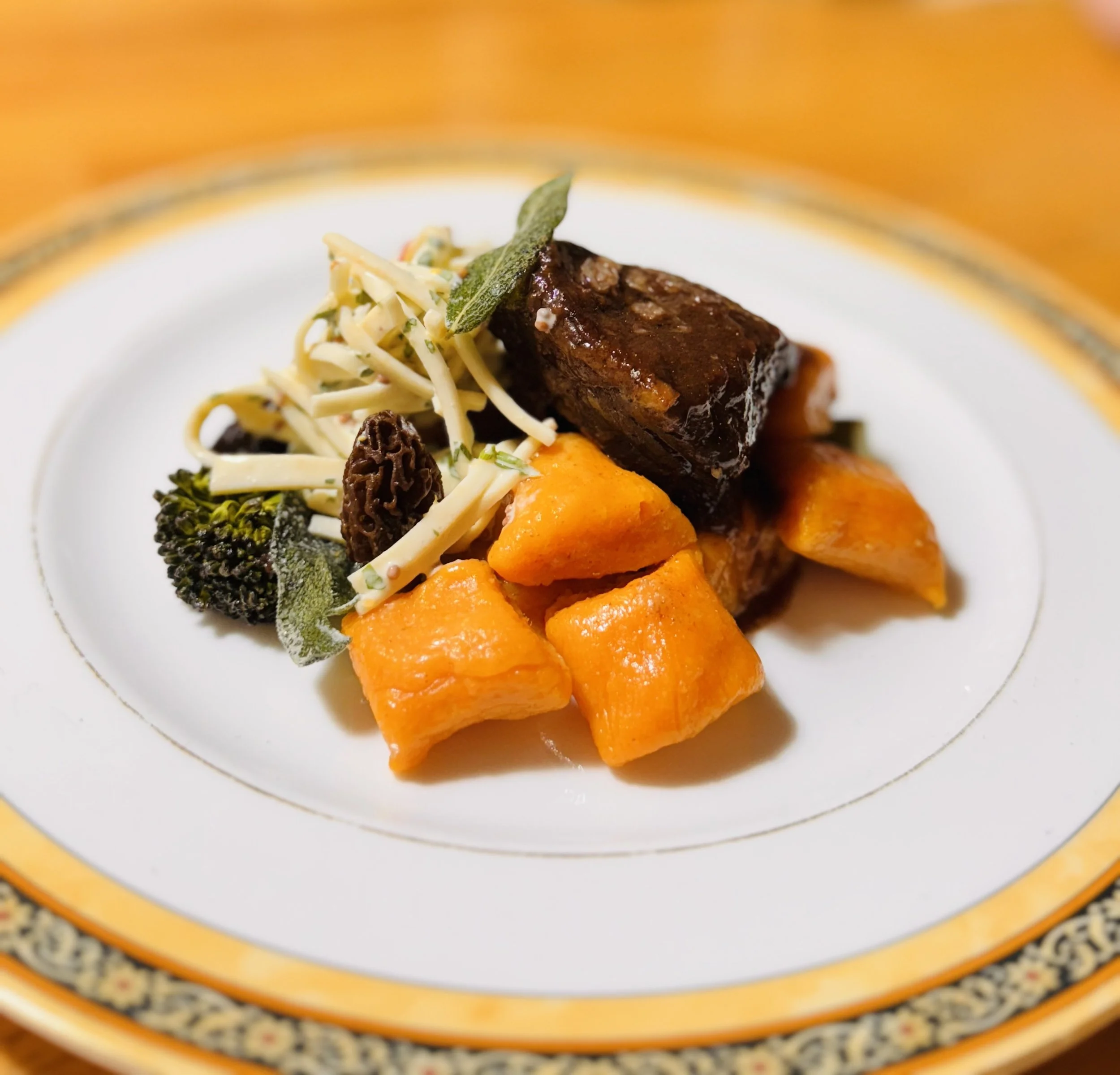 Sweet potato gnocci, celery root slaw, lemon broccolini, morels