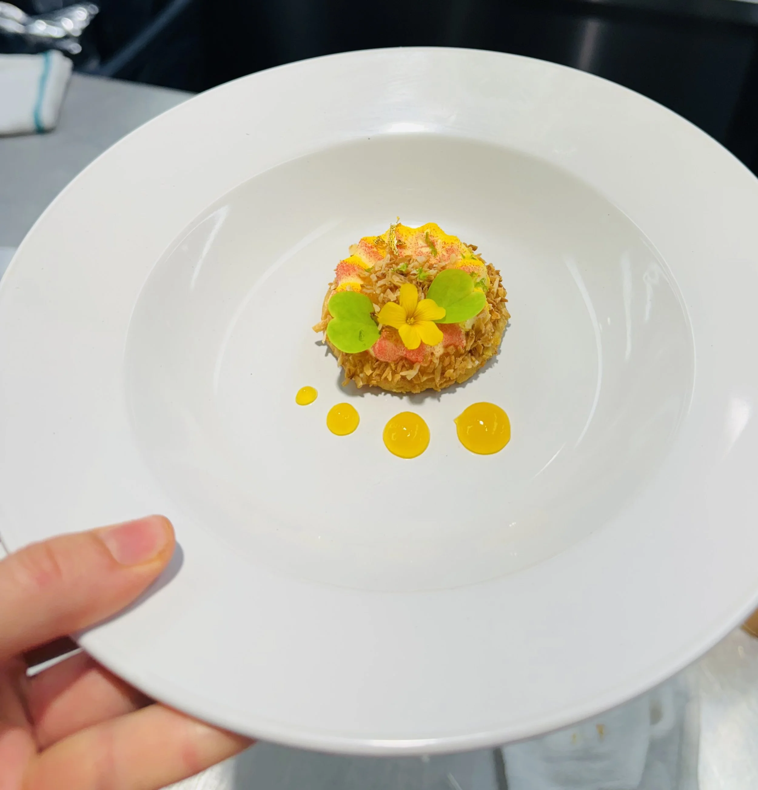 Toasted coconut, mango gel